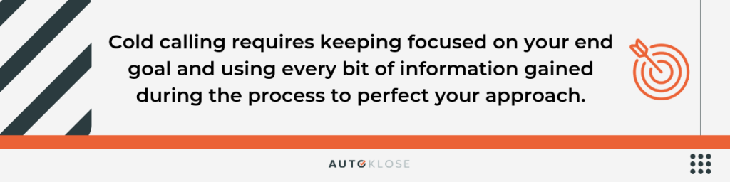 Like an aspiring fiction writer who has to deal with rejection letters in the hope of finding that life-changing publishing contract, cold calling requires keeping focused on your end goal and using every bit of information gained during the process to perfect your approach.